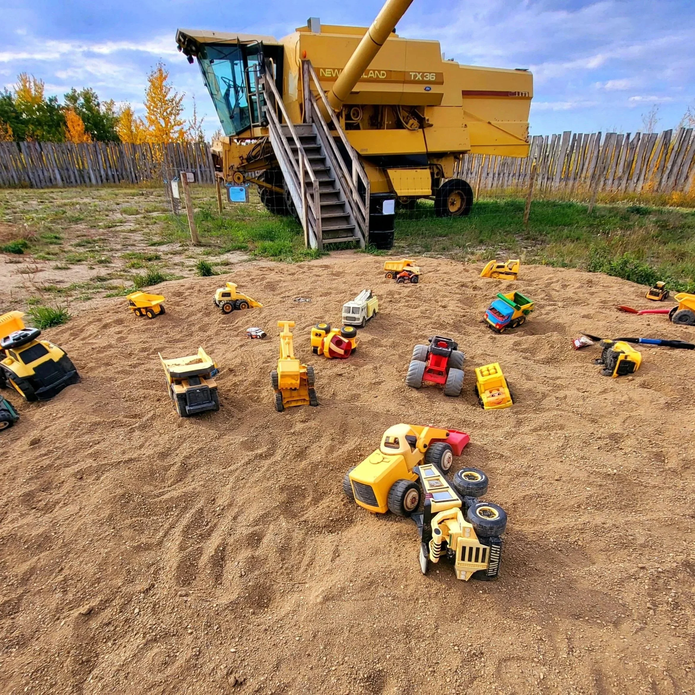 play in our outdoor playground with real farm equipment